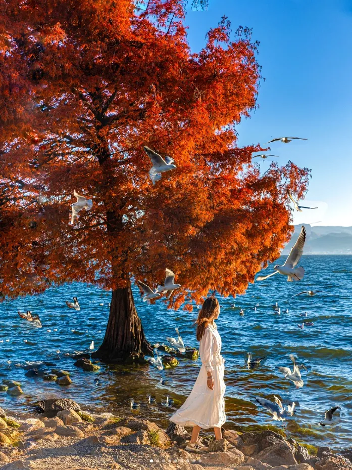 午餐后,前往➱喜洲古镇(洱海生态廊道骑行+海舌公园旅拍(夫妻树+金花共舞))千年历史的喜洲古镇,那里青瓦白墙,稻香扑鼻,白族人民热情好客,让我们乘坐古镇的观光游览车一路往洱海边去,生态廊道已为我们准备好了随风骑行的小花车,一路吹着风,经过五百年相生相伴,风雨共济的网红夫妻树,那里的无人机航拍摄影师为我们留下美好的视频,一路骑行至那万亩大草坪中,有白族金花与我们共舞,到达海舌公园蜜月半岛,不经意间:你在沙滩上,海风吹起了你的长发,旅拍摄影师为你定格下那最美的瞬间。