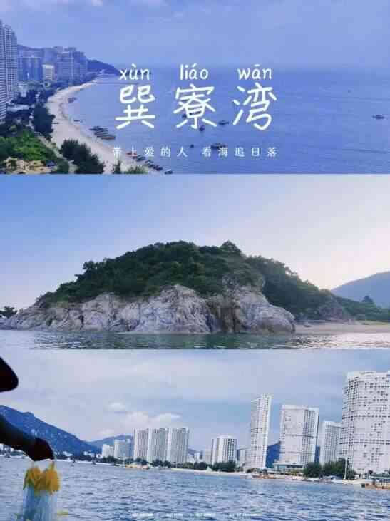 ---早餐后车赴广东“马尔代夫”【巽寮湾度假区】清乾隆年间,一群难民为逃避封建统治的嚣政,颠沛流离,从远地来到这山环水绕荒僻之地,搭茅寮定居。后茅寮失火烧毁,在重建新居时,村民力求吉利,用八卦中的三、巽身之命之意,和茅寮的“寮”字合得名;