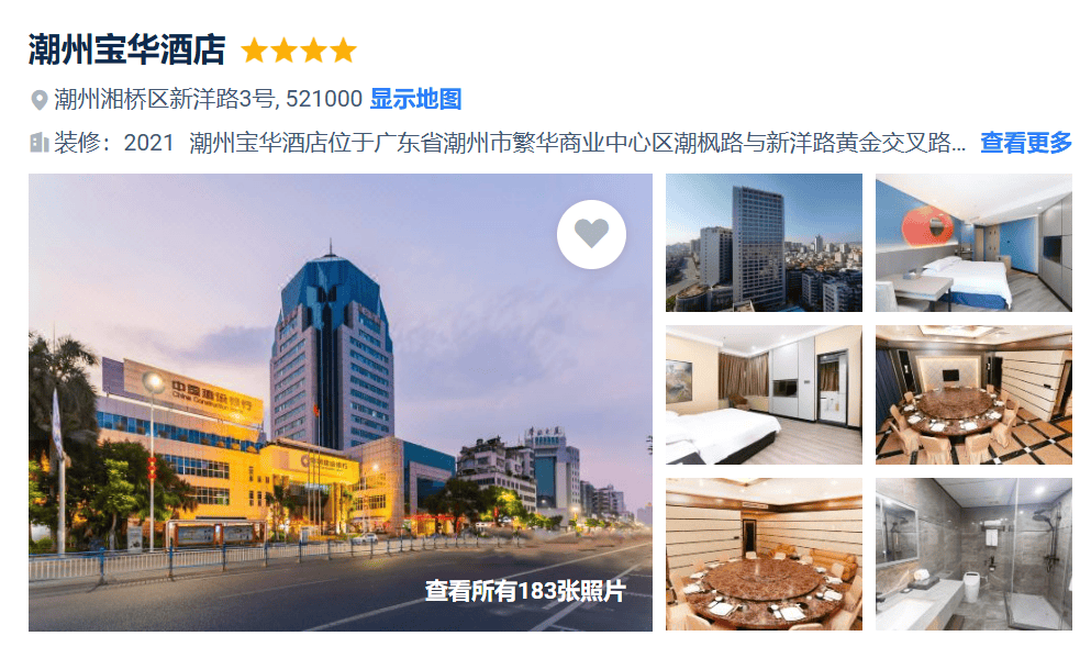 潮州:宝华酒店、如家精选、安南、乐声等同级酒店
