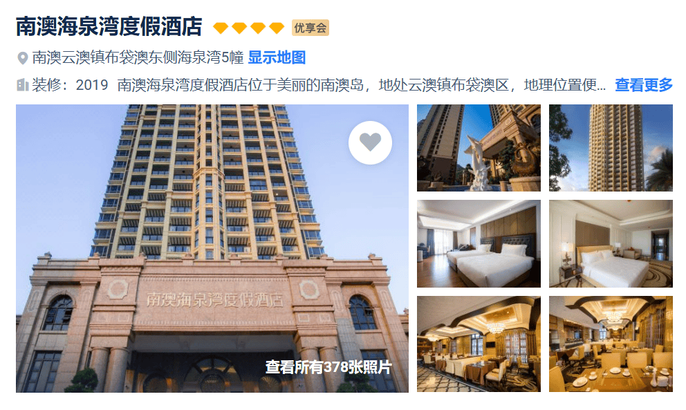 南澳岛:海岛五星携程四钻海泉湾度假酒店或同级(欣涛度假村、格兰云天等同级)