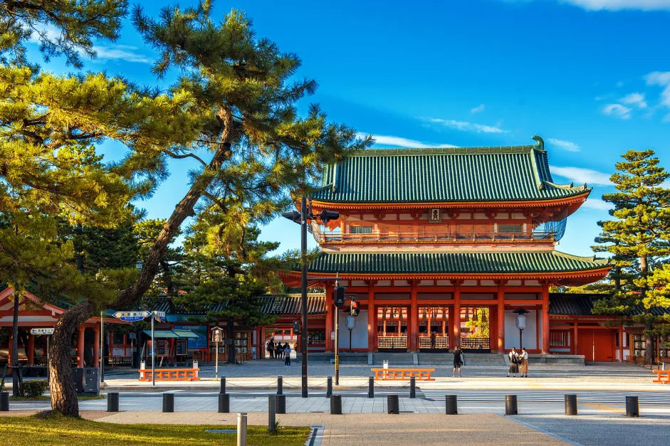 ◈【平安神宫】位于日本京都,明治28年(1895年)为纪念桓武天皇平安迁都1100周年而创建,主祭神是第50代桓武天皇和第121代孝明天皇。 平安神宫的建筑是模仿平安时代皇宫的部分建筑修建的,只有原建筑物三分之二的规模。整座神宫包括大鸟居、神宫道、应天门、大极殿及神苑等部分,受到唐代洛阳皇宫紫微城的影响深远,有着明显的唐代中国建筑的风格。