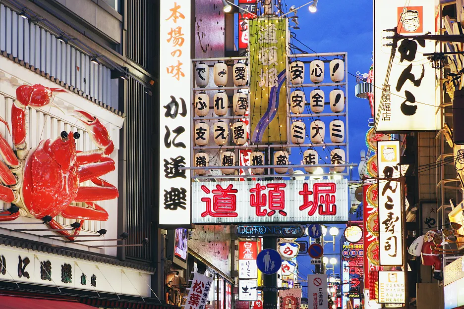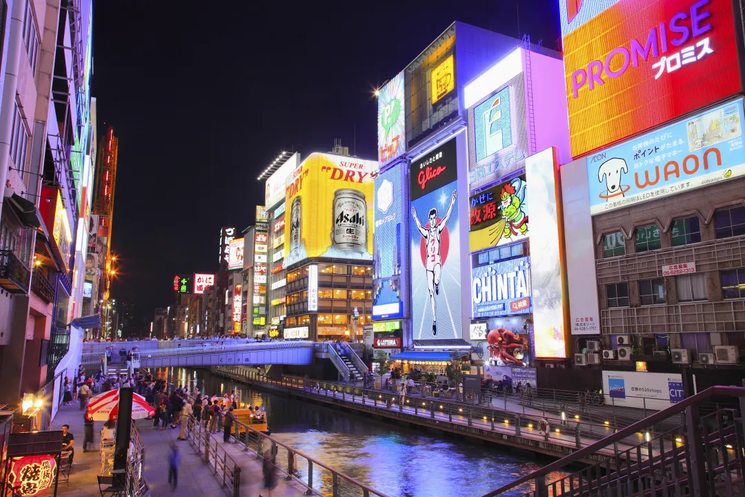 道顿堀位于心斋桥南端,是大阪最繁华的商业区之一,也是地标级的美食据点。河畔的大型霓虹广告牌,也成为大阪的著名标志,固力果霓虹广告堪称世界最有名户外广告牌。道顿堀作为大阪的代表地区,常常在国内外电影中亮相,这里更是热闹非凡,游人还可以坐观光船游览两岸夜景。