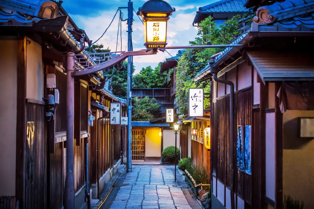 ◈【祗园】祇园位于八坂神社前、鸭川到东大路通之间的四条通沿街,是京都有名的艺伎区。白天你可以在茶室、餐厅里消遣或者逛逛土特产商店,到了傍晚灯笼闪烁时,还经常会碰到行色匆匆的艺伎与你擦肩而过。