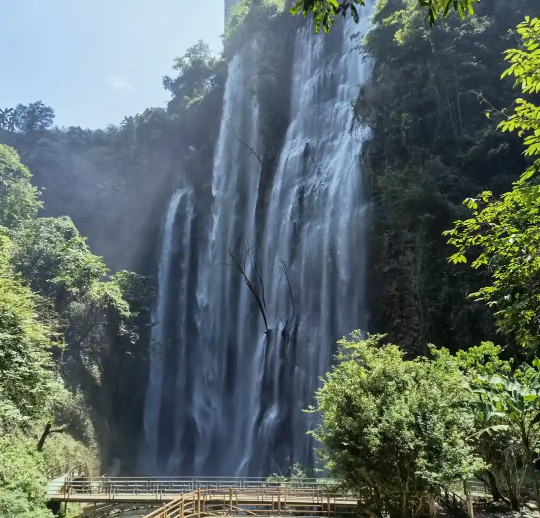 早餐后前往游览国家特级景点--【德天跨国大瀑布风景区】(游览时间约90分钟,35元/人接驳车已含),徒步进入景区游览亚洲第一大、世界第四大跨国瀑布,瀑布由【中国德天瀑布】和【越南板约瀑布】相连构成,横跨中越两国边境,宽208米,落差70米,纵深60米,三级跌落,雄奇壮阔!而后徜徉于【清代53号界碑】旁边贸小集市或于新旧国界碑前拍照留影。