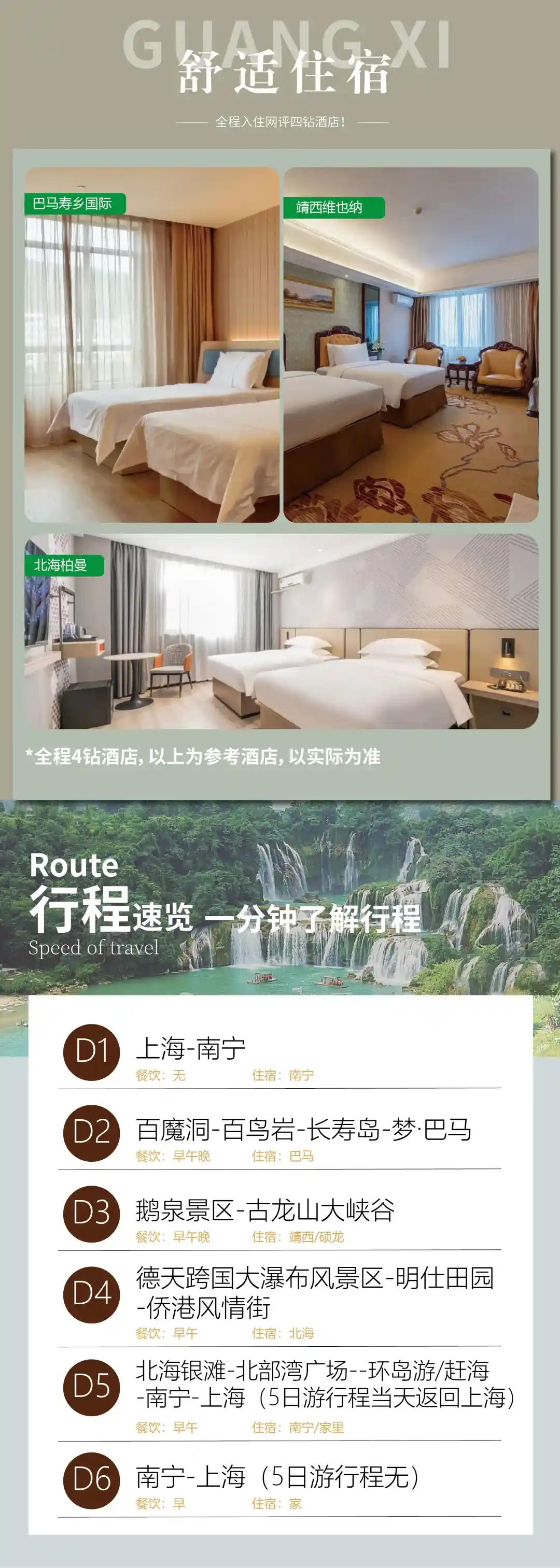 巴马:巴马寿乡、华昱假日酒店或其它同级酒店