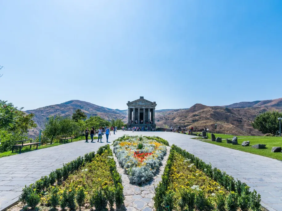 加尼神殿原来是亚美尼亚国王夏宫所在地,是希腊文化末期(西元2世纪)亚美尼亚文化的唯一遗迹。