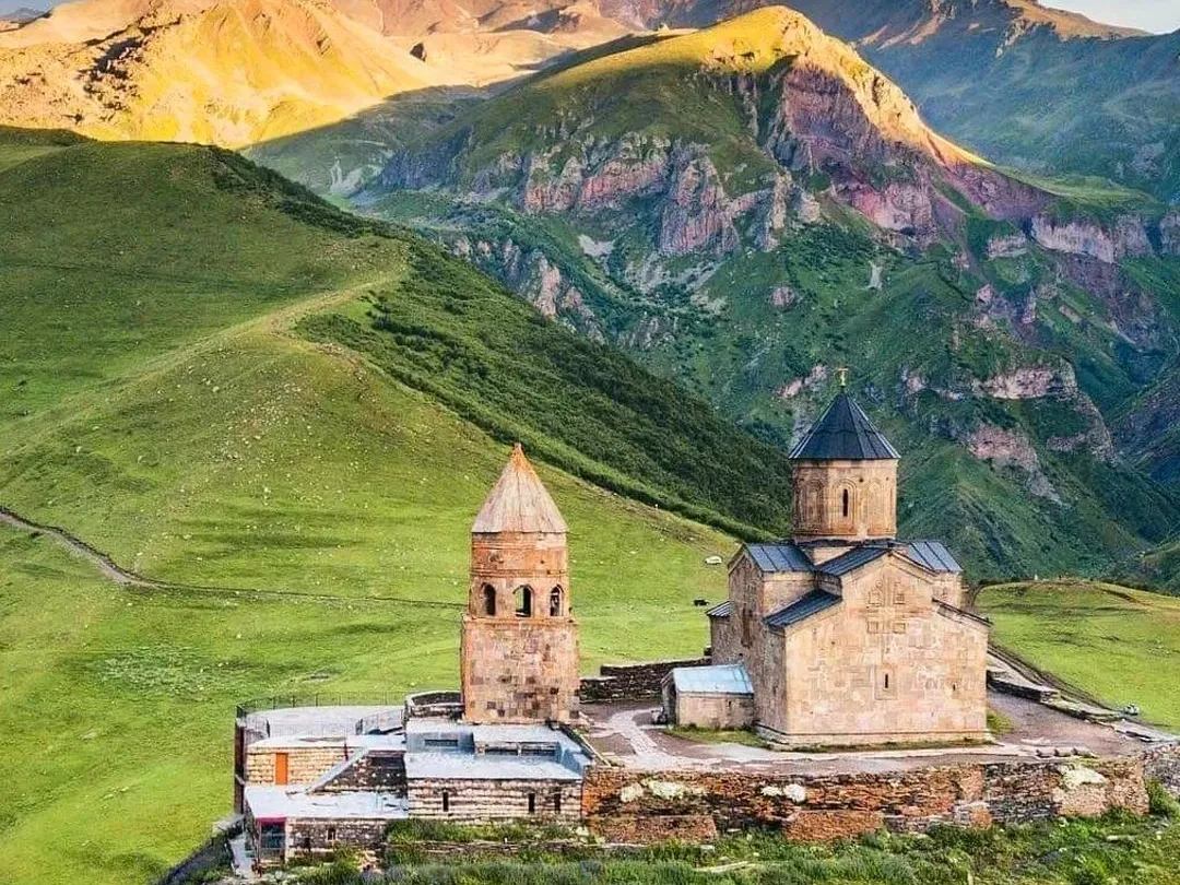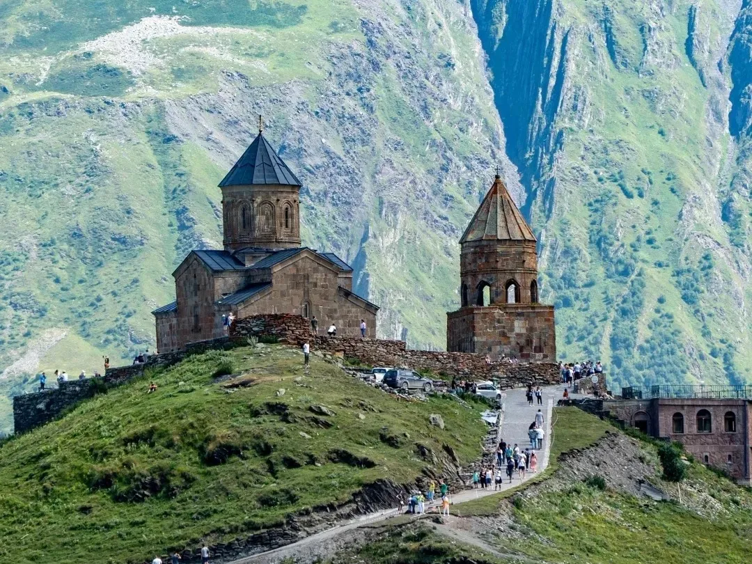 >名胜古迹:格鲁吉亚有许多古迹和自然风光,包括Svaneti地区的古老塔楼、Georgian Military Road上的Gergeti Trinity Church和Vardzia岩石城。