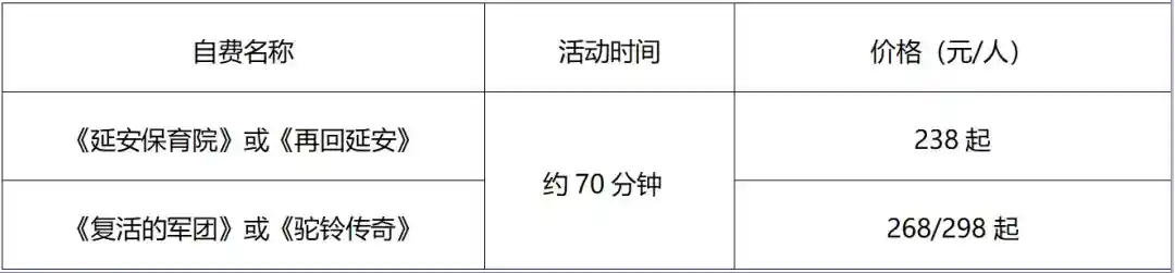 ●【延安保育院】或【再回延安】(门票 238 元起,自愿自理);结束后赠送