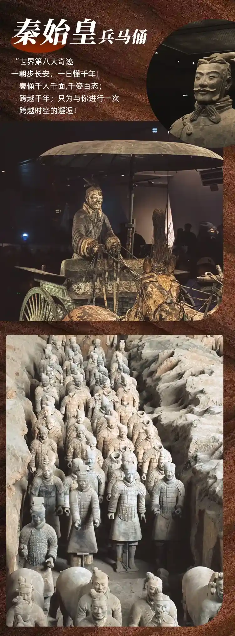 中餐后参观“世界第八大奇迹”、肃立于地下两千年之久的临潼区(车程约4小时),抵达之后参观位于骊山北麓的“世界第八大奇迹”—