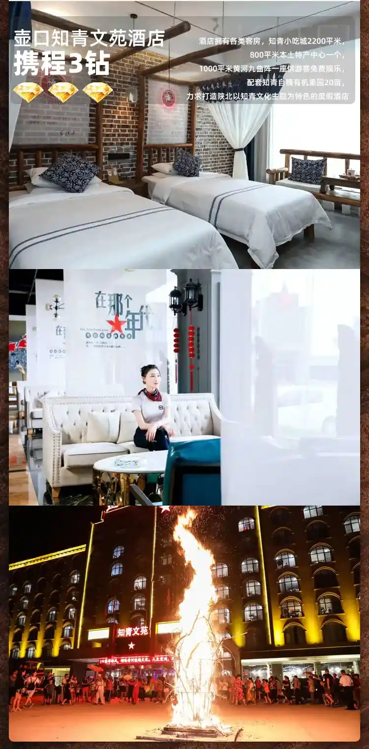 《延安保育院238元/人起》有效运用奥运会中最为先进的舞台理念和设备,声、光、电、水、雾、乐、舞、歌创造出无数身临其境的梦景。国内首款能整体、分体垂直升降的全自动化舞台,战机呼啸和浪漫星空的三维成像穿越了多维战地时空,带您见证孩子们的天籁合唱,听取陕北民歌的高亢悠扬,感受安塞腰鼓的激情迸放,感受无邪的稚子之心,无私的教师之心,无畏的战士之心及军民共筑的人间大爱。或《再回延安》是陕北首部红色主题行进式情景体验剧;以延安革命历史为背景,通过“一间记忆的博物馆”、“一簇燎原的星火”、“一条漫漫的长征路”、“一面不朽的旗帜”等四个部分的内容。充分利用声光电、真实风雪等高科技手法,打造多重体感互动体验,让游客沉浸其中,重温那段光辉岁月。