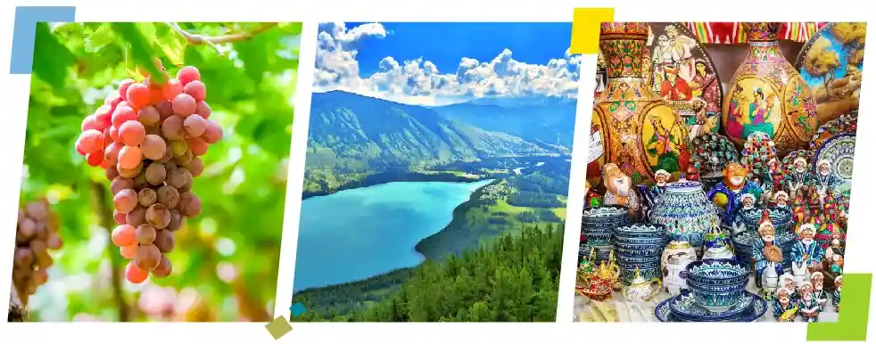 新疆哈密(大海道魔鬼城、哈密回王府、十二木卡姆演出)、乌鲁木齐(天山天池、国际大巴扎)吐鲁番(艾丁湖、葡萄庄园、坎儿井、火焰山)、阿勒泰(北屯、喀纳斯风景区、禾木景区、五彩滩)、伊犁(霍尔果斯口岸、伊宁、那拉提草原、赛里木湖、薰衣草庄园)、阿图什(卡拉库里湖、白沙山)、喀什(喀什老城、艾提尕尔大清真寺、香妃园、职人街)、库车(独库公路南段、天山神秘大峡谷、库车王府)、库尔勒(博斯腾湖、罗布人村寨、塔克拉玛干沙漠)兰州(水墨丹霞风景区、黄河风情线、黄河母亲雕像、中山铁桥、水车博览园)空调旅游专列18日游