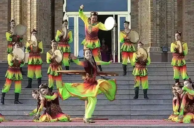 ★新疆特别安排美丽的维吾尔族姑娘载歌载舞的专列欢迎仪式