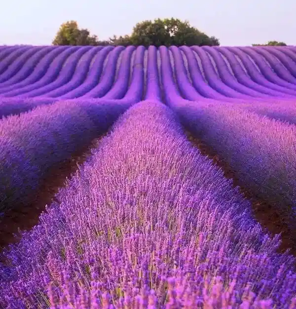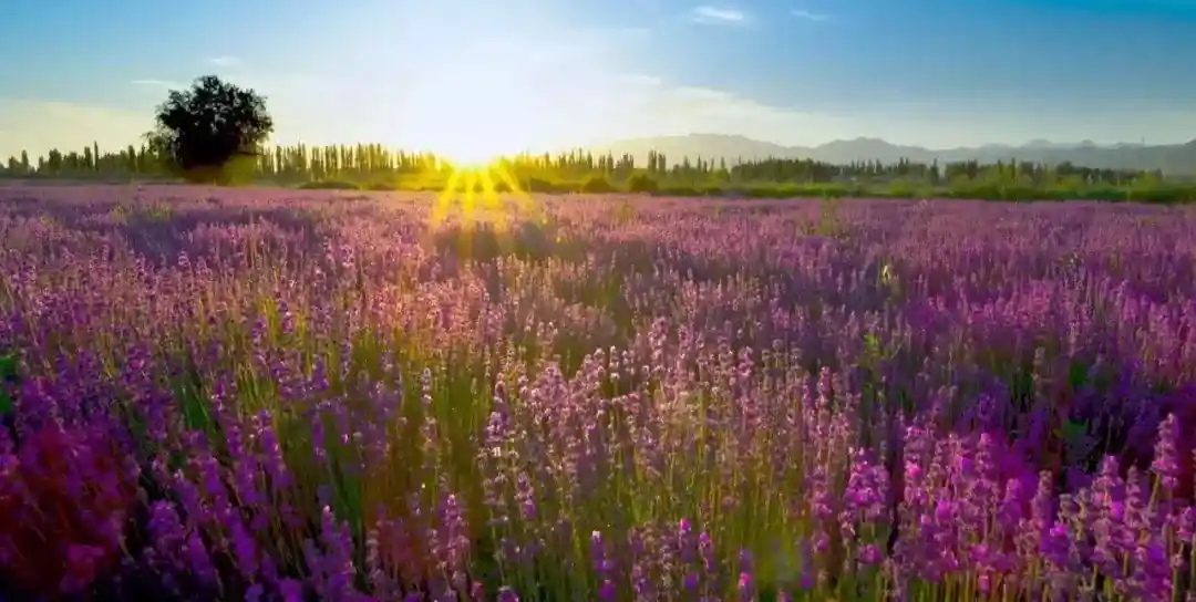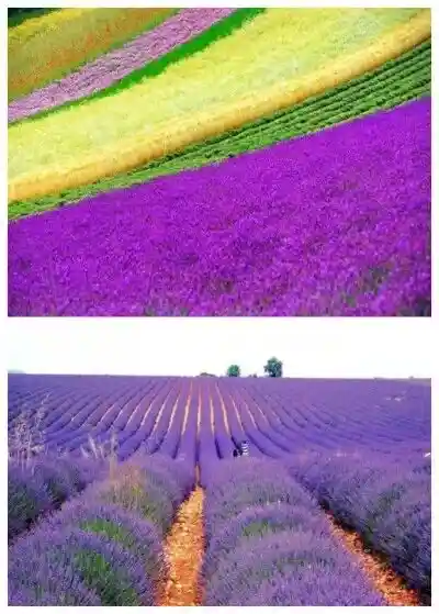 大片的薰衣草宛如深紫色的波浪层叠起伏,汇成一场醒不过的大地之梦,方圆数里,都笼罩在薰衣草的馥郁芬芳里;