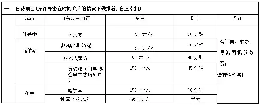 (二)旅游者在旅游过程中参加自费活动本着旅游者自愿消费的原则,无任何强制消费参加活动。