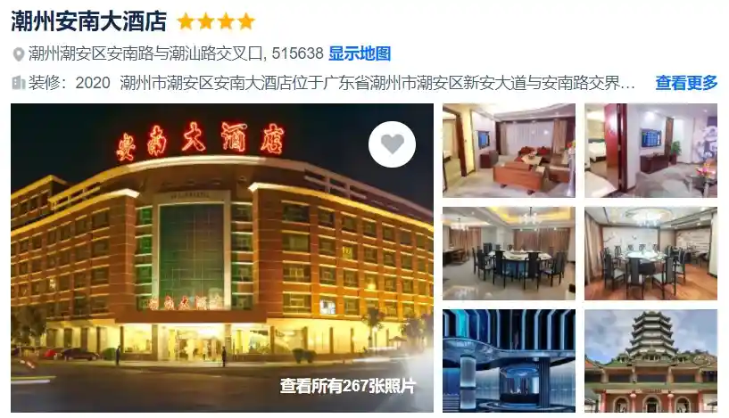 潮汕酒店: 安南大酒店、潮州豪逸酒店、万斯吉酒店,如遇满房则安排同等级酒店