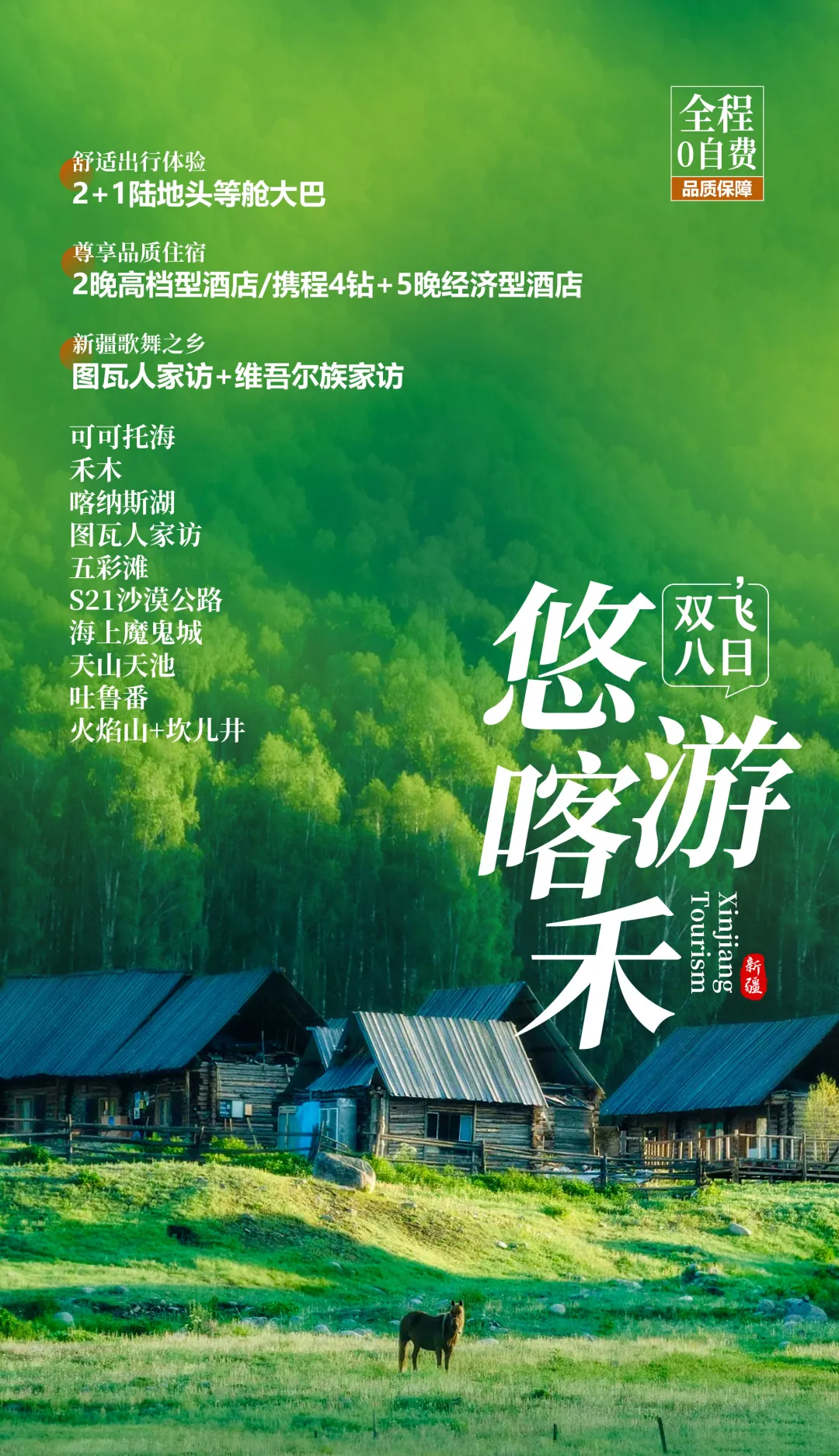 《悠游新疆8日双飞之旅:探喀纳斯禾木美景,品特色美食,住多样酒店,乌鲁木齐起止的难忘之旅》