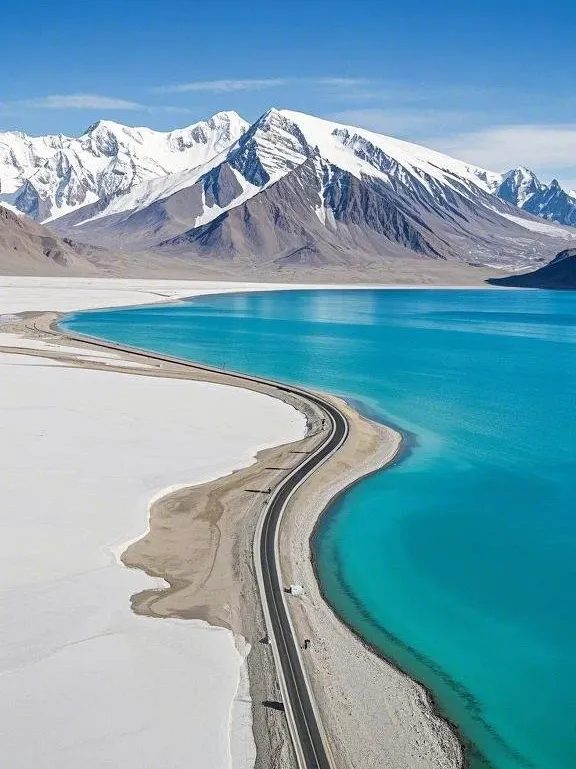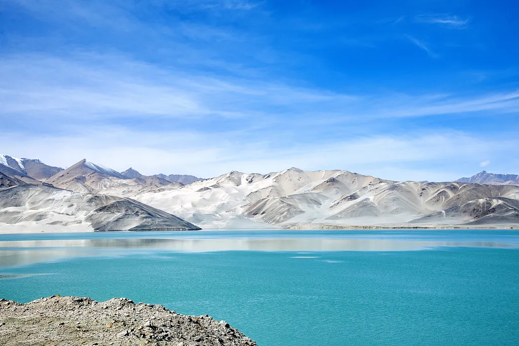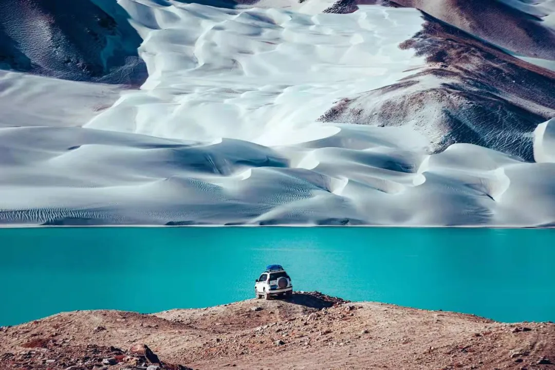 抵达喀什,前往帕米尔高原-【白沙湖】途经素有流沙河之称的白沙河,塔什库尔干白沙湖又叫恰克拉克湖,是从喀什去往塔什库尔干的必经之地,位于国道边上。这里因千百年来 高原风沙侵袭,将周围的山侵蚀风化形成白色沙山,再由常年风吹导致湖中白沙堆积,故称之为“白沙湖”。白沙湖湖面如镜,周围白沙如雪,景色令人震撼。