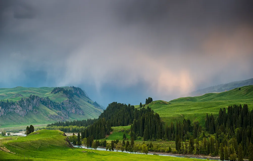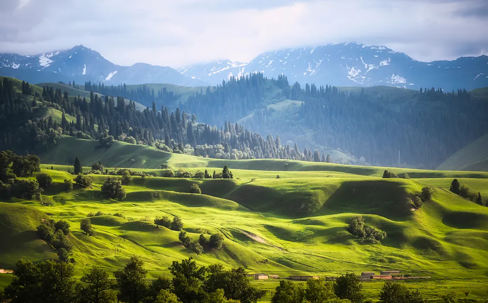 【百里画廊】百里长卷,天然画廊,唐布拉草原是新疆伊犁地区著名的草原,素有 “百里画廊”之称。百里画廊的起点和终点, 是从唐布拉避暑山庄到乔尔玛。溪水淙淙,云杉林苍翠挺拔,层峦叠嶂。森林,雪山、河流, 还有洁白的哈萨克毡房,组成一幅完美的画 卷。唐布拉草原一步一景,美不胜收;