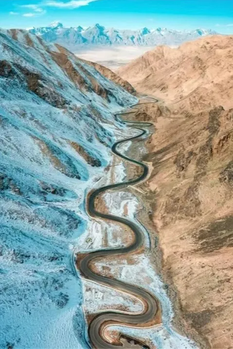 【独库公路南段】独库公路,北起克拉玛依市独山子区,纵贯天山南北,南端连接阿克苏地区库车市,全长561公里。由于其过半以上地段横亘崇山峻岭、穿越深川峡谷,连接了众多少数民族聚居区,因此被《中国国家地理》评选为“纵贯天山脊梁的景观大道”。独库公路地形特殊,急弯陡坡较多,有280多公里的路段在海拔2000米以上,受天山山区冬季降雪、结冰等自然因素影响,一年仅开放五个月,每年9月底到次年5月会实行长达7个月的冬季交通管制。