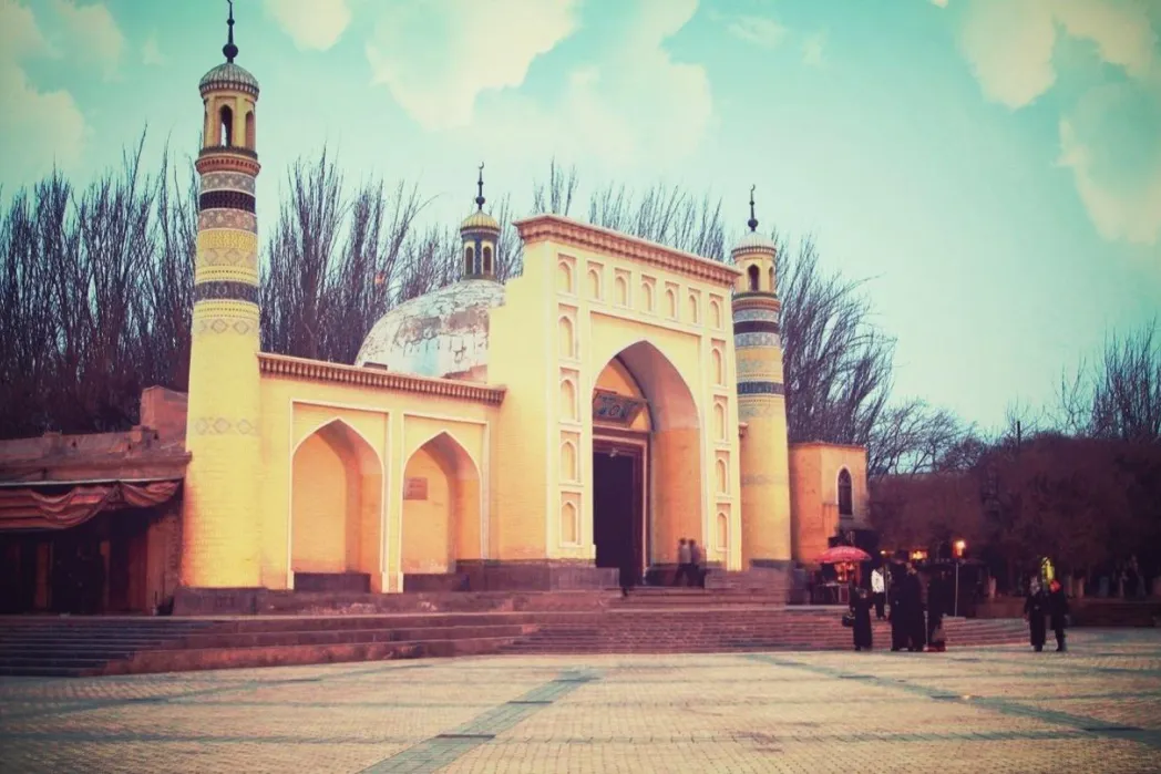 【艾提尕尔清真寺】(游览约0.5小时)老城所有的道路都通往这座清真寺,对信仰伊斯兰教的穆斯林来说,这里不仅是做礼拜的场所,更是他们洁净灵魂的归宿。它坐落于新疆维吾尔自治区喀什市的艾提尕尔广场西侧,占地25.22亩,它是颇具规模的清真寺,富有伊斯兰特色,是喀什的地标建筑,广场上很多鸽子和闲聊的维吾尔族老人,是拍摄人文的好地方。