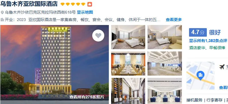 7/8月乌鲁木齐(四钻):吐哈石油酒店、九源酒店、伊犁大酒店、海德酒店或同级*2晚