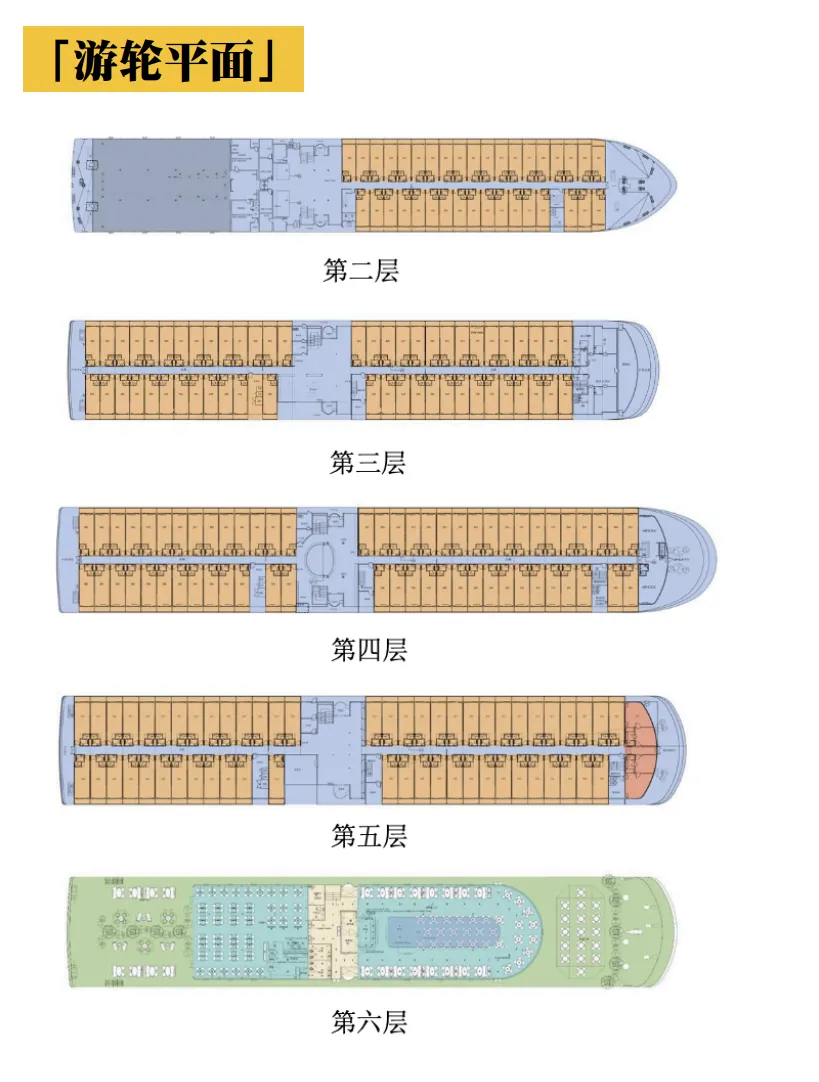 3、以上价格为游轮二楼床位价,如需指定楼层:需另付150元/人/层