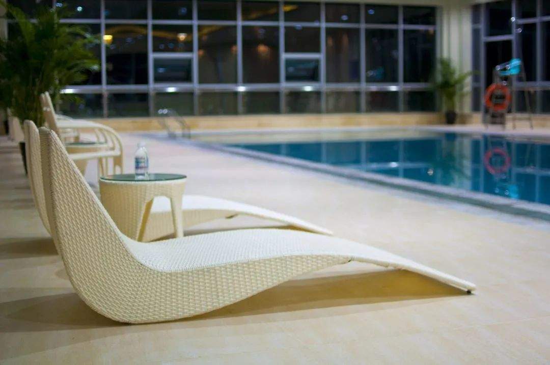 酒店室内恒温泳池和健身房都可任意使用,尤其恒温泳池,可以强健身体、亲子娱乐一键Get!