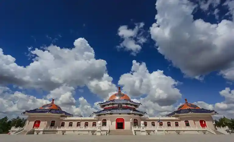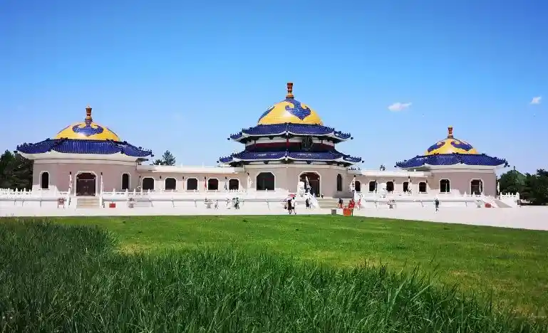 蒙古帝国创始人成吉思汗的衣冠冢,主体建筑由三座蒙古包式宫殿组成,内部陈列苏勒德祭坛、历史壁画及金马鞍等文物。每日举行“查干苏鲁克”祭祀仪式,展现蒙古族传统信仰。位于内蒙古自治区鄂尔多斯市伊金霍洛旗草原上,距鄂尔多斯市区40公里。由于蒙古族盛行“密葬”,所以真正的成吉思汗陵究竟在何处始终是个谜。后前往参观