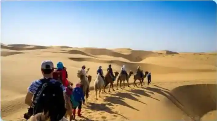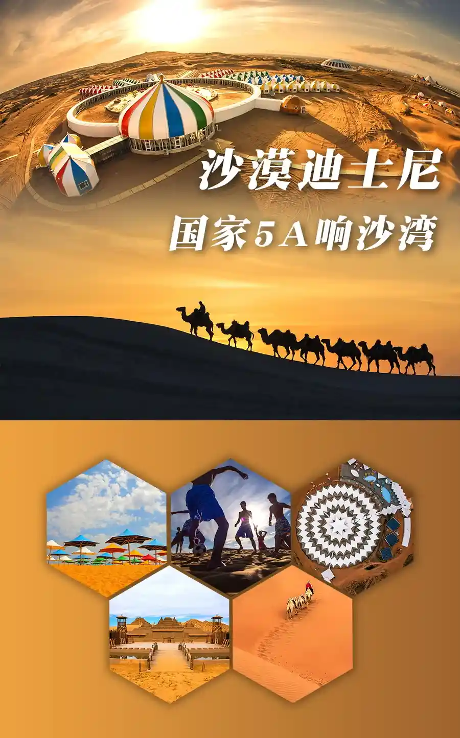 ●【银肯响沙湾】国家AAAAA级景区((游览约3.5小时)这里是集观光与休闲度假为一体的特大型综合型的沙漠休闲景区,地处中国著名的库布其沙漠的最东端,拥有全世界最长的骆驼队—超过500峰。抵达景区后看茫茫大漠、沙滚滚,连绵起伏,这里因沙子会唱歌而蜚声中外,景区内的游玩项目众多,让你尽情纵横在沙漠之中,体会西部沙漠特有的辽阔!
