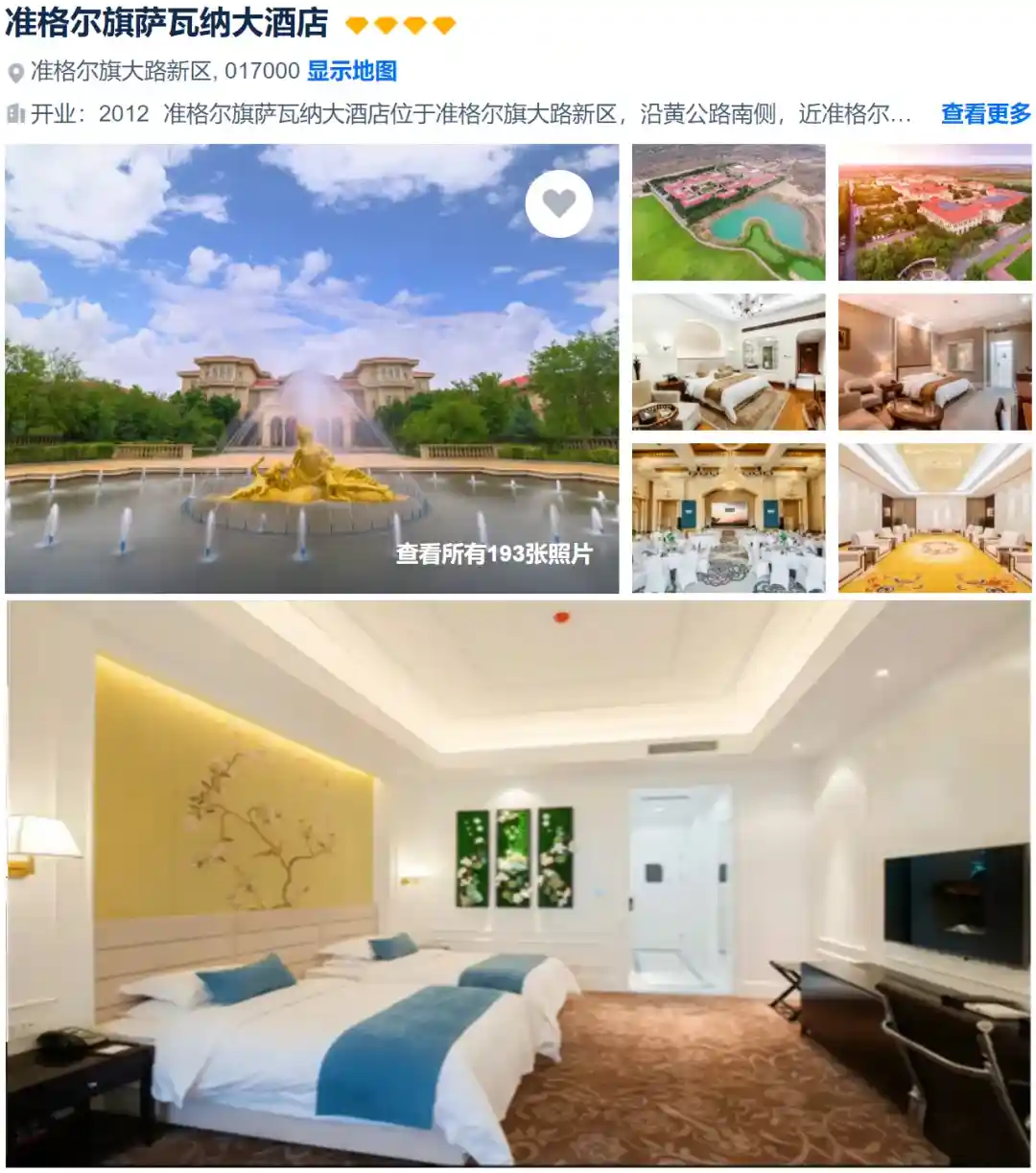 准格尔旗*1晚:萨瓦纳庄园酒店、朗景酒店或同级