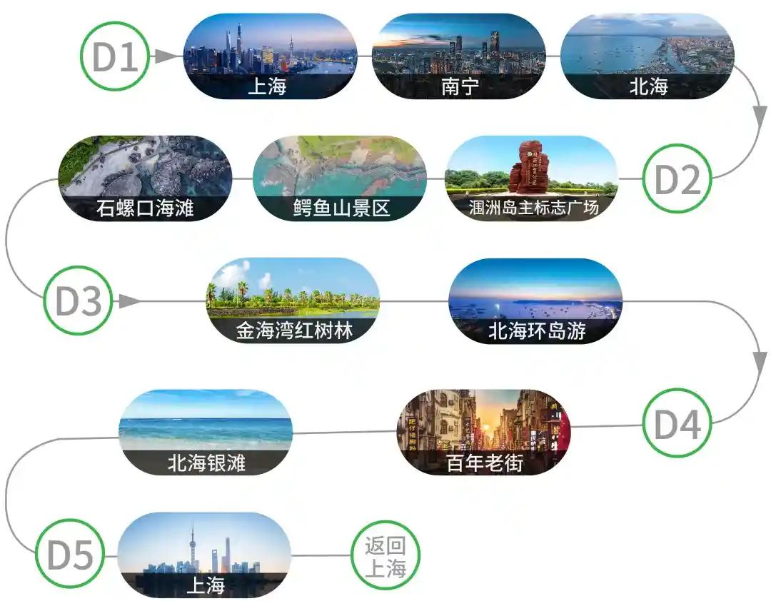 【备注】北海是亚热带海滨度假城市,导游将根据当地情况对北海景点的游览顺序进行调整安排,敬请注意。