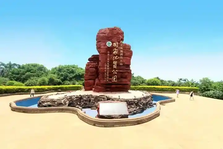 涠洲岛主标志广场是涠洲岛的标志性建筑,它建在涠洲岛西南部距火山口遗迹约一公里处。主标志碑下,还配套建设有近5000平方米的主题广场,周围散落着火山喷发后呈沉积物状的火山岩体,与附近的热带珍稀植物和南湾海港相映成趣。