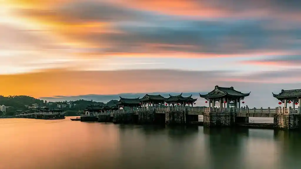 ●【广济桥】广济桥俗称湘子桥,始建于宋乾道七年(公元1171年),历史悠久。并与赵州桥、洛阳桥、卢沟桥并称为“中国四大古桥”。桥面古香古色,桥身横跨韩江,并集梁桥、拱桥和浮桥于一体,结构十分特殊,堪称我国桥梁史上的孤例。