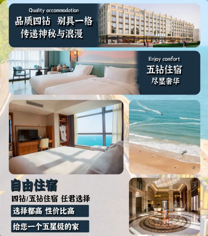 【五钻】汕头潮酒店/君华,南澳格兰/欣涛/岛上筑海景,潮州临江高级/合府庄园,或同级酒店;