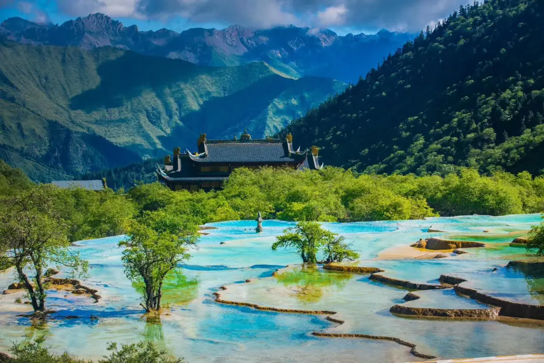 早餐后前往松潘县境内的人间瑶池【黄龙风景区4h】。主景区黄龙沟位于岷山主峰雪宝顶下,是中国唯一的保护完好的高原湿地。于1992年被联合国教科文组织列为世界自然遗产,有着“圣地仙境”“人间瑶池”的美誉。主要景点有【洗身洞、金沙铺地、盆景池、黄龙洞、黄龙寺、石塔镇海、五彩池】以规模宏大、结构奇巧、色彩丰艳的地表钙华景观为主景。梯田般层层错落向上的彩池,映出奇幻的色彩,五光十色,恍若进入瑶池仙境。