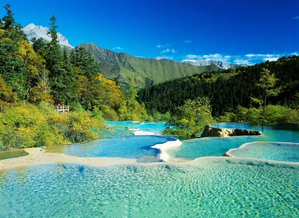 2、黄龙风景区为龙形的一条沟,沟内有两条栈道,一条上山栈道,一条下山栈道。黄龙景区所有景点位于下山栈道两边。费用不含黄龙索道上行80元/人、下行40元/人、保险10元/人、耳麦30元/人、景区观光车单边20元/人。