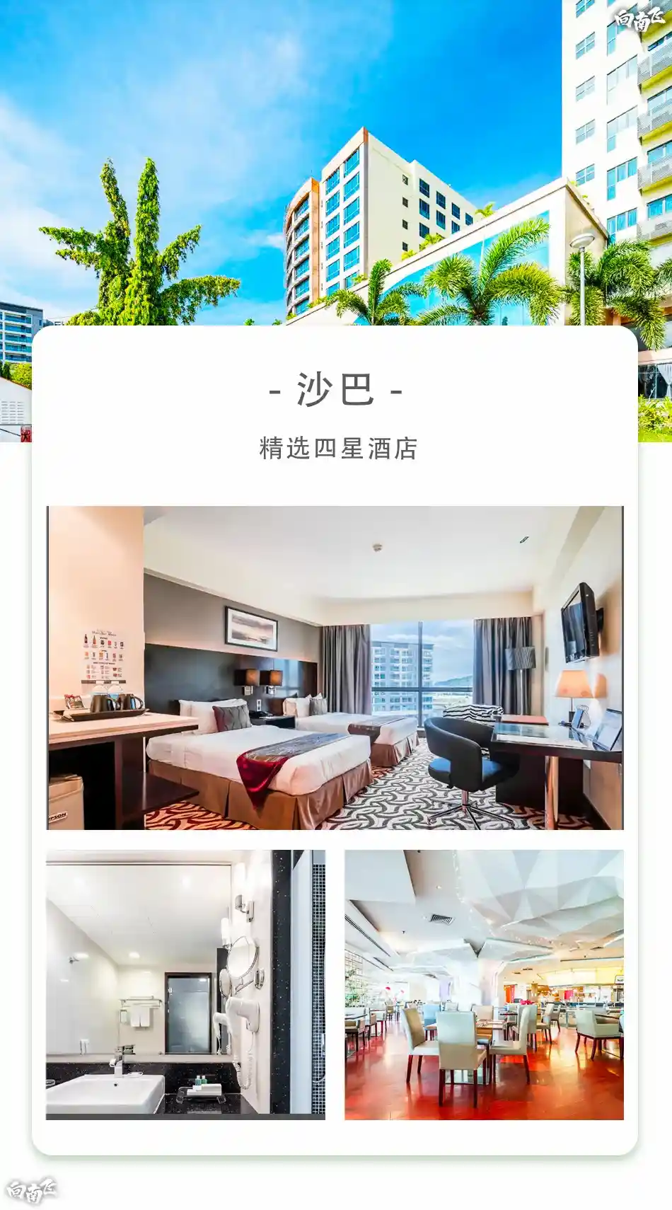 餐:早√中X晚√ 宿:沙巴四星酒店