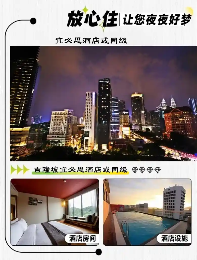吉隆坡2晚4*宜必思 KLCC 酒店/TRION 美居酒店/怡思得美丽亚酒店 沙巴2晚4*克拉甘丽晶酒店或同级 |