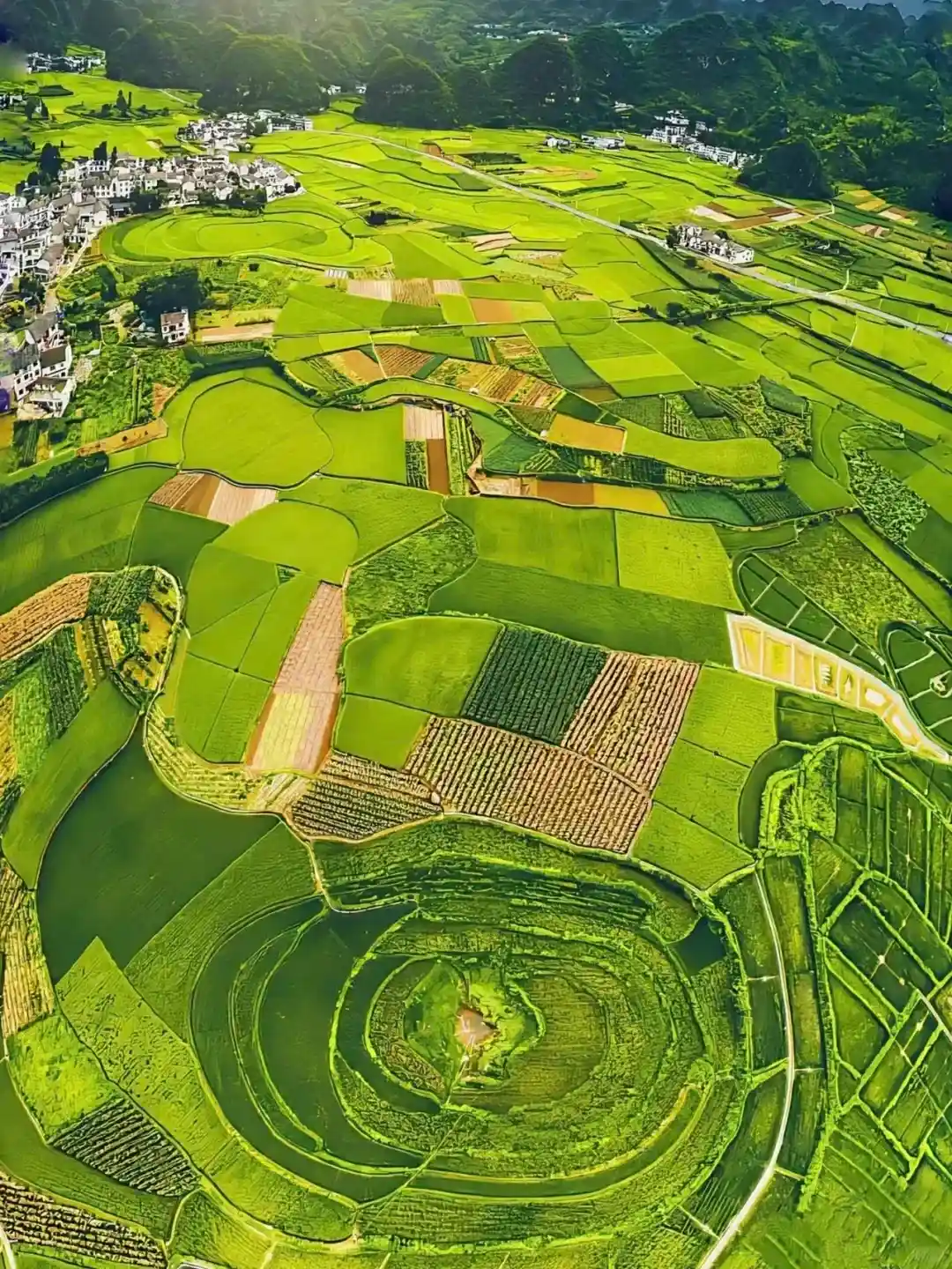 【八卦田】平卧在纳灰寨农田中央,其造型神奇迷离,如神匠打造,层叠有序。八卦田中有三个天然地漏,深不见底,被称为地眼——大地的眼睛。农田耕地以漏斗为中心,弧型展布,构成了奇异的“八卦”图案。二月份的万峰林还可以解锁隐藏玩法—油菜花田,一眼遥望无尽的花田,群山环绕,似脱离尘世的桃源。