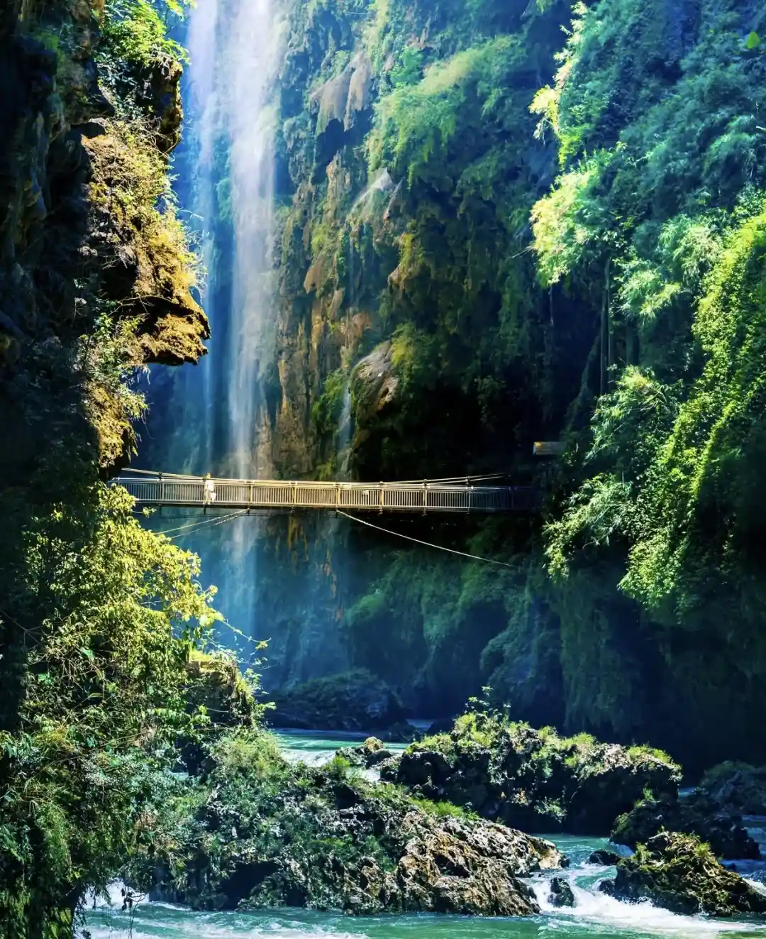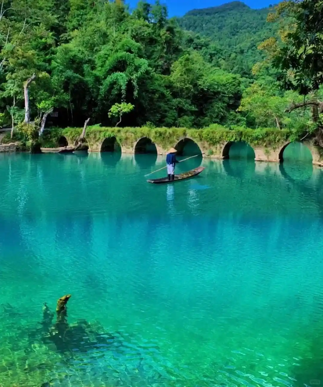 早餐后,乘车(约2H)前往荔波,游览世界自然遗产地,国家级AAAAA景区,中国最美丽的地方【小七孔景区】(不含电瓶车40元/人,保险10元/人,必须消费敬请自理)。景区坐落在宽仅1公里、长12公里的狭长幽谷里,集洞、林、湖、瀑、石、水多种景观于一体,玲珑秀丽,有“镶嵌在地球腰带上的绿宝石“的美誉。游览景区名字由来地【小七孔古桥】,古桥建于清代道光十五年(1835年),桥长25米,桥面宽1.8米,拱高4米,横跨响水河,昔为沟通荔波至广西的重要桥梁,桥由麻石条砌成,桥身爬满藤募和蕨类,古色古香的桥下是涵碧潭。两岸古木参天,巨大的虬枝沿着桥伸臂,宛如巨伞撑在桥上。欣赏景区灵动多姿的各色瀑布:【68级跌水瀑布】顺贽而下,奔泻而去;【拉雅瀑布】精巧醉人,水珠飞溅;【卧龙潭瀑布】银丝泻地,潭水色彩斑斓绚丽;【翠谷瀑布】在群峰紧锁中苍翠欲滴。感受赤足湿身乐趣的【水上森林】,清澈的水流冲刷着青石,行走于其中,宛若身临琼瑶仙池;在【鸳鸯湖泛舟】(不含鸳鸯湖游船30元/人,非必须消费项目,自愿消费)—寻找一份爱情;妩媚而迷人的【响水河】更是贯穿了整个风景区。