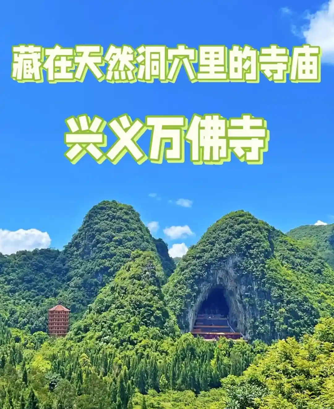 【万佛寺】位于万峰林的最南边,与山峰融为一体,是一个天然的洞穴寺院,寺院内有约一万樽佛像,洞内墙壁上还摆放了几千个小佛像,寓意万佛朝宗。还可以为自己、家人求上一个“平安符”,祈求平安。