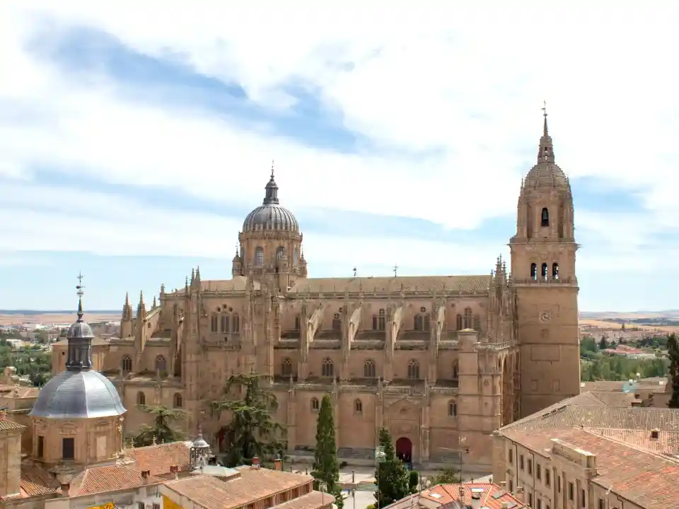 之后驱车前往智慧之城-【萨拉曼卡】(总计游览时间约2小时)萨拉曼卡的建筑大部分是在十九世纪由萨拉曼卡侯爵建造的,现已成为欧洲最奢华的街区之一,是高雅与魅力的象征。值得一提的是,萨拉曼卡大多数的建筑上都有红色的涂鸦,这源自15世纪的一个传统,大学生取得学位后都去参加斗牛来庆祝,然后用公牛的血在墙上写下'胜利'一词并注上日期。这一风俗一直保留到今天,但是已经改为较平和的形式---用红漆写在标牌或纪念牌上。由于萨拉曼卡城的建筑用的石料在夜里灯光下会闪闪发光,因此萨拉曼卡城也被称为黄金之城。