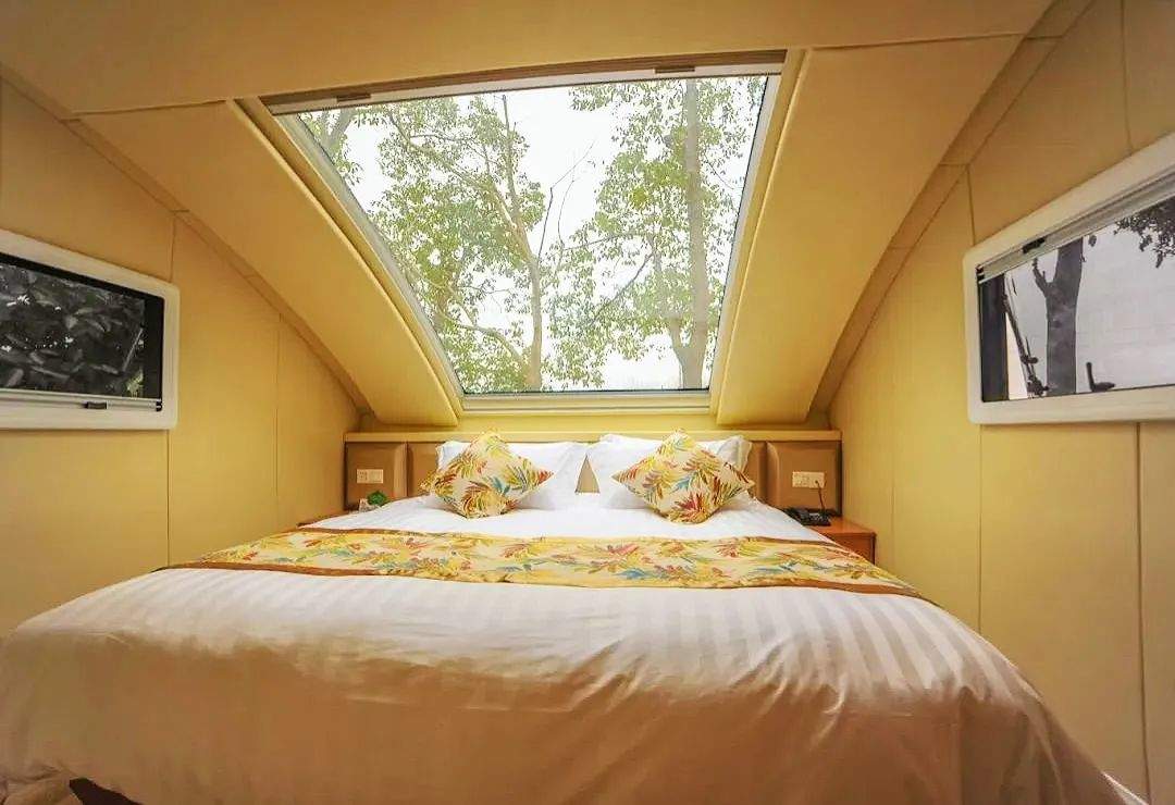 星空房车超大的全景天窗是最大亮点,躺在床上就能将浩瀚星空尽收眼底。一室一厅的房间有一间客厅+一间主卧房车内电视机、空调、干湿分离的卫生间等设施一应俱全