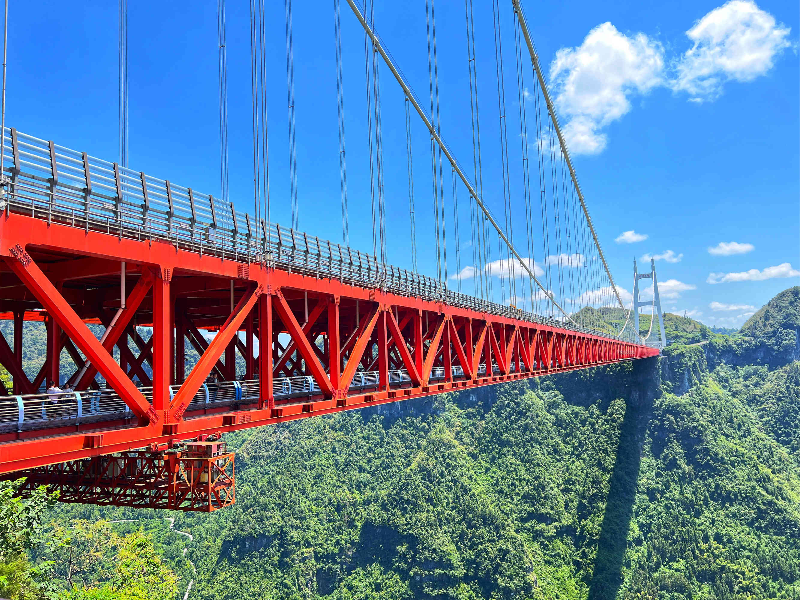 --酒店早餐后,前往参观世界第一悬索大桥【矮寨大桥景区】,乘观光电梯直达观光走廊,站在【大峡谷玻璃天廊】上,低头是幽深的大峡谷,潺潺德夯河水经流而下,犹如在云中漫步一般。前往体验悬崖【魔鬼悬崖玻璃栈道】,它是由悬崖栈道与观景平台组成的高空游览线,全长1.5公里,位于德夯大峡谷峭壁之上,采用现代设计语言,萃取“蝴蝶”、“飘带”等苗族文化元素,形成戏剧性“跌宕起伏”、“惊心动魄”的旗帜性游步道系统。游览悬崖栈道时不仅可以欣赏到山高谷深、崖陡壁俏、林深路幽、巍峨险峻的武陵山脉中最精彩、最险峻、最梦幻的地段,还可以体验由玻璃魔道带来的视觉刺激、冲击游人接受极限的潜能。抵达后参观当年楚国诗人屈原含悲问天谱写中国伟大诗章《九歌》《天问》的地方—天问台,人立台上,顿感天地之伟大,人类之渺小。