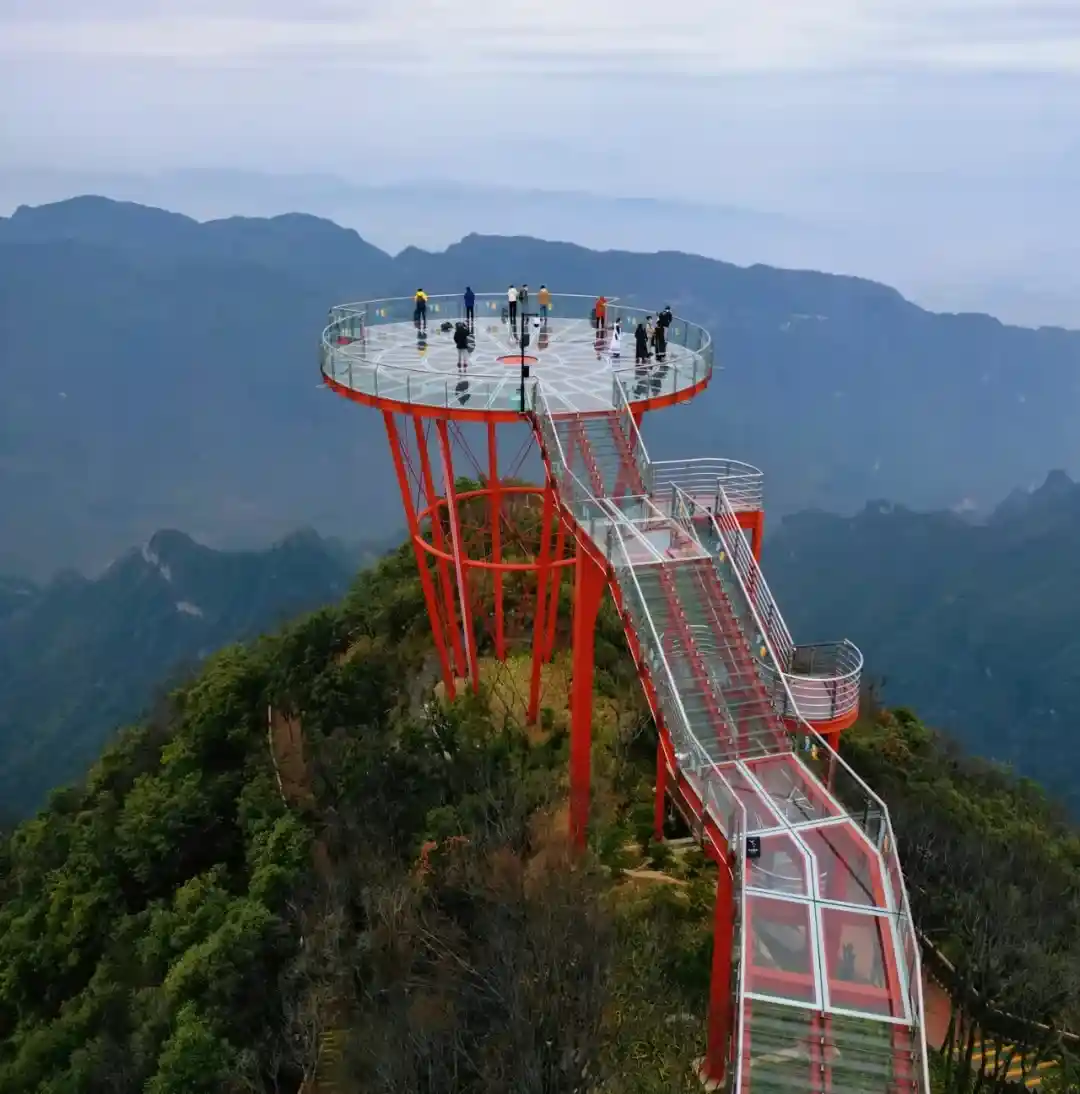 ---酒店早餐后,前往位于张家界市永定区南部的【七星山景区】,山顶台地面积约11.32平方公里,森林覆盖率高达92%,因山顶有七座山峰呈北斗七星分布,因此得名。乘(七星山索道)全长2003米,约10分钟漫游峰墙直达山顶,游览(如意玻璃栈道)该栈道位于海拔1314米的七星山如意台下,全长199.99米,宽9.9米寓意长长久久。这里常年云雾缭绕,行走其上,有平步青云之感,游客站在栈道上可与群山云海“同框”,感受湘西武陵山的神蕴!一路行至(1520天空之眼)网红玻璃观景台,此处为观日出云海,晚霞星辰的最佳观景点,同时可俯瞰仙人溪、远眺张家界市区之全景,令人流连忘返······