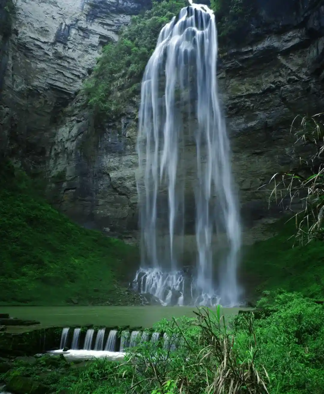 前往位于德夯苗寨风景区的【流沙瀑布】,流沙瀑布位于九龙溪源头,高216米,是国内落差最高的瀑布之一。丰水期,滚滚流水从悬崖上飞落入深潭,犹如九龙翻波,吞云吐雾,声若巨雷,震撼山谷,气势磅礴,雄奇壮观!每当枯水时节,流水飘下悬崖,时而如轻纱拂面,时而似珠帘悬挂,宛如白纱荡涤绿潭,漾起层层涟漪,婀娜多姿,温柔秀雅。流沙瀑布风景之美令人惊诧,有人赞曰:远山滴翠水含烟,万张清泉洒人间。