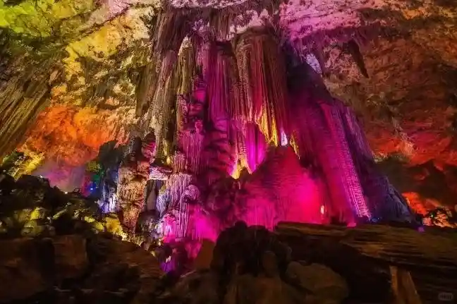 参观【惹迷洞】又叫乌龙洞,“惹迷”土家语为“鸡叫”之意,因洞内景观惹人着迷,后人们相传为惹迷洞。据考察,此洞穴发育于四亿多年前的寒武系可溶蚀岩层中,在地下水沿断裂构造不断侵蚀、溶蚀伴生断裂崩塌作用下,经过上亿年的演变而逐步形成。在洞内,考古学家发现了三十至四十万年前生活在这里的古脊椎动物的腿骨和牙齿化石。惹迷洞的镇洞之宝为“九龙抱柱”,位于惹迷洞的前厅中央,柱高31.5米,径围0.8米,它是目前世界上发现的最细长的钟乳石,也是世界最大单笋类直立钟乳石。