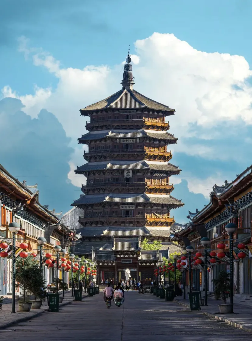 应县木塔建于公元1056年,纯木结构无钉无铆,与意大利比萨斜塔、巴黎埃菲尔铁塔并称“世界三大奇塔”