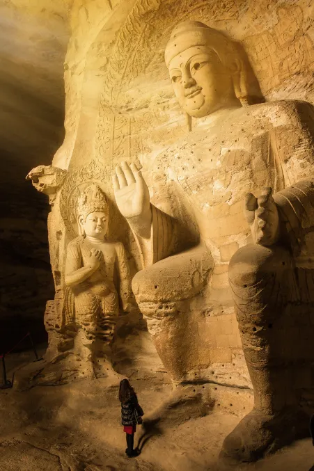 【云冈石窟】(参观约2小时)云冈石窟是公元5世纪的石刻艺术精华,与敦煌莫高窟,龙门石窟,麦积山石窟并称中国四大石窟。