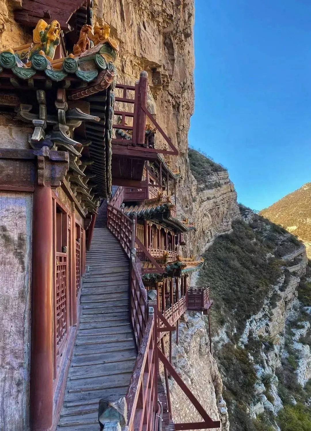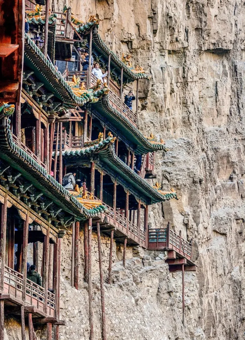 【悬空寺】(参观约1小时、不含登临)悬空寺的建筑极具特色,以如临深渊的险峻著称,素有“悬空寺半天高,三根马尾吊空中”的俚语。